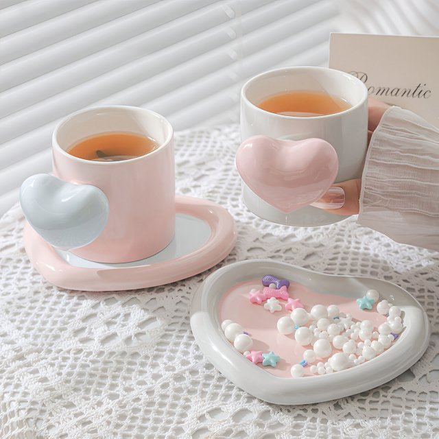 What sets this mug apart is its emotional design. The heart shape transforms a simple drink into a moment of affection and care. It is ideal for breakfast drinks, afternoon tea, romantic coffee dates, or relaxing evenings at home. This cup is especially loved by those who enjoy thoughtful details and stylish tableware that feels personal and meaningful.